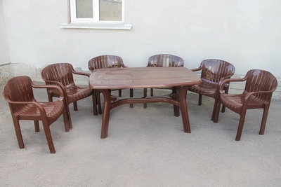 Главная / Пластиковая мебель / Наборы пластиковой мебели / Набор пластиковой мебели стол прямоугольный Премиум и 6 кресел Летнее (шоколад)