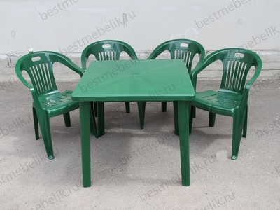 Главная / Пластиковая мебель / Наборы пластиковой мебели / Набор пластиковой мебели стол квадратный и 4 кресла Комфорт (темно-зеленый)