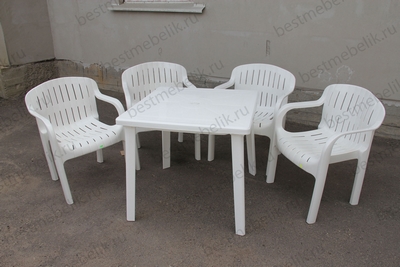 Главная / Пластиковая мебель / Наборы пластиковой мебели / Набор пластиковой мебели стол квадратный и 4 кресла Летнее (белый)