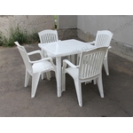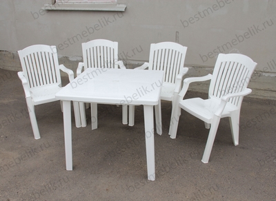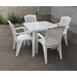 Главная / Пластиковая мебель / Наборы пластиковой мебели / Набор пластиковой мебели стол квадратный и 4 кресла Премиум (белый)