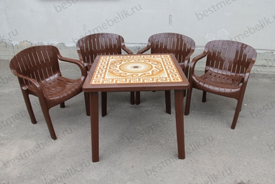 Главная / Пластиковая мебель / Наборы пластиковой мебели / Набор пластиковой мебели стол квадратный Греческий орнамент и 4 кресла Летнее (шоколад)