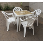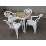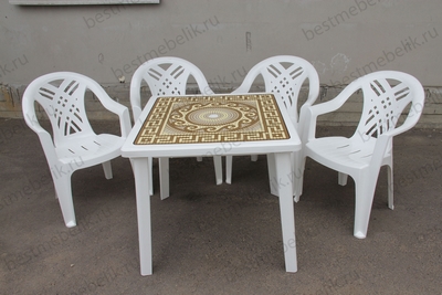 Главная / Пластиковая мебель / Наборы пластиковой мебели / Набор пластиковой мебели стол квадратный Греческий орнамент и 4 кресла Престиж (белый)