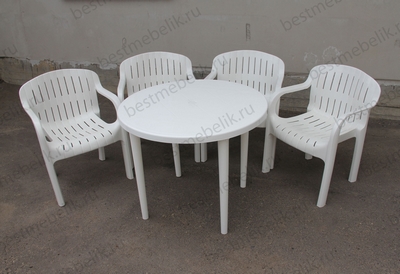 Главная / Пластиковая мебель / Наборы пластиковой мебели / Набор пластиковой мебели стол круглый и 4 кресла Летнее (белый)