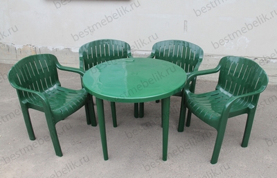 Главная / Пластиковая мебель / Наборы пластиковой мебели / Набор пластиковой мебели стол круглый и 4 кресла Летнее (темно-зеленый)