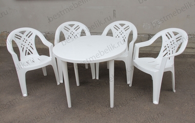Главная / Пластиковая мебель / Наборы пластиковой мебели / Набор пластиковой мебели стол круглый и 4 кресла Престиж (белый)