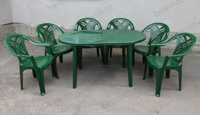 Главная / Пластиковая мебель / Наборы пластиковой мебели / Набор пластиковой мебели стол овальный и 6 кресел Престиж-2 (темно-зеленый)
