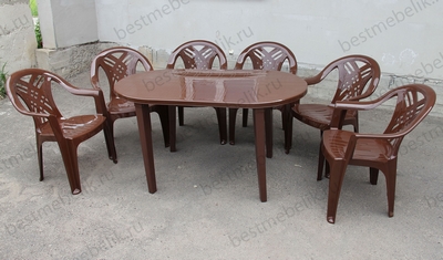 Главная / Пластиковая мебель / Наборы пластиковой мебели / Набор пластиковой мебели стол овальный и 6 кресел Престиж-2 (шоколад)